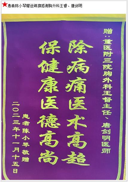 患者赠送锦旗感谢胸外科王睿等人-锦旗-患者心声-患者服务-重庆医科大学附属第三医院【官方网站】