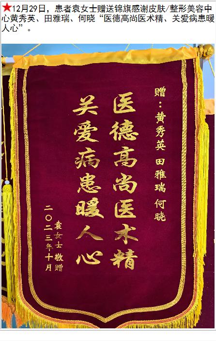 患者袁女士赠送锦旗感谢皮肤/整形美容中心黄秀英等人。-锦旗-患者心声-患者服务-重庆医科大学附属第三医院【官方网站】