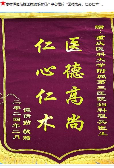 患者谭倩茹赠送锦旗感谢妇产中心程兵。-锦旗-患者心声-患者服务-重庆医科大学附属第三医院【官方网站】