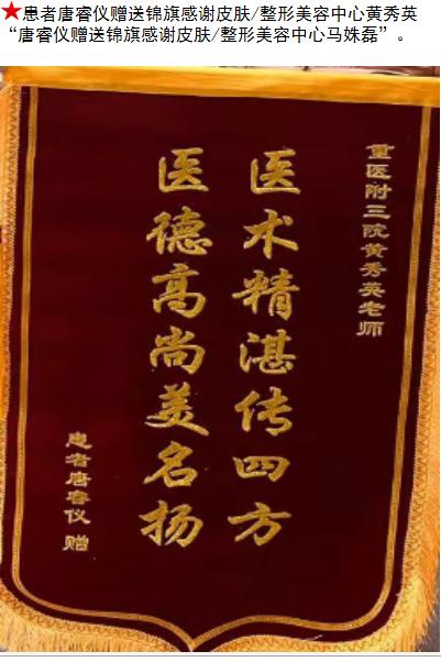 患者唐睿仪赠送锦旗感谢皮肤/整形美容中心黄秀英。-锦旗-患者心声-患者服务-重庆医科大学附属第三医院【官方网站】