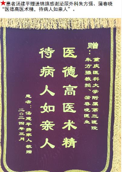 患者汤建平赠送锦旗感谢泌尿外科朱方强等人。-锦旗-患者心声-患者服务-重庆医科大学附属第三医院【官方网站】