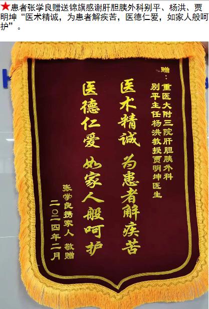 患者张学良赠送锦旗感谢肝胆胰外科别平等人。-锦旗-患者心声-患者服务-重庆医科大学附属第三医院【官方网站】