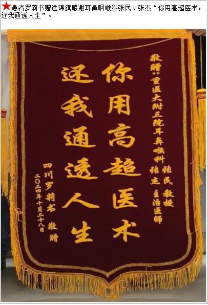患者罗莉书赠送锦旗感谢耳鼻咽喉科张民等人。-锦旗-患者心声-患者服务-重庆医科大学附属第三医院【官方网站】