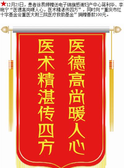 患者徐易婷赠送电子锦旗感谢妇产中心蒋利华等人,并向医疗救助基金捐赠善款100元。-锦旗-患者心声-患者服务-重庆医科大学附属第三医院【官方网站】