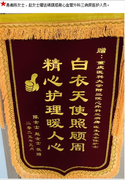 患者陈女士、赵女士赠送锦旗感谢心血管外科三病房医护人员。-锦旗-患者心声-患者服务-重庆医科大学附属第三医院【官方网站】