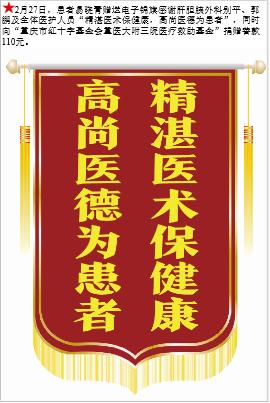 患者易晓青赠送电子锦旗感谢肝胆胰外科别平等人,并向医疗救助基金捐赠善款110元。-锦旗-患者心声-患者服务-重庆医科大学附属第三医院【官方网站】