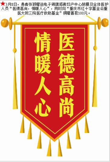 患者张颖赠送电子锦旗感谢妇产中心胡珊等人,并向医疗救助基金捐赠善款100元。-锦旗-患者心声-患者服务-重庆医科大学附属第三医院【官方网站】