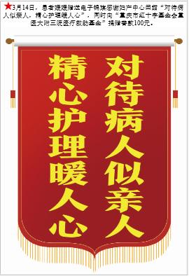 患者媛媛赠送电子锦旗感谢妇产中心田甜,并向医疗救助基金捐赠善款100元。-锦旗-患者心声-患者服务-重庆医科大学附属第三医院【官方网站】