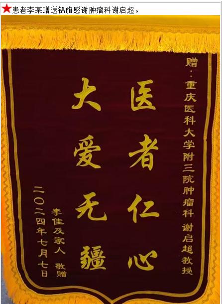 患者李某赠送锦旗感谢肿瘤科谢启超。-锦旗-患者心声-患者服务-重庆医科大学附属第三医院【官方网站】