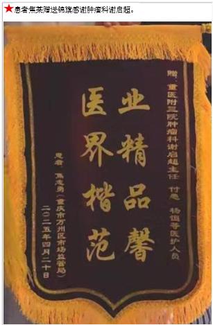 患者焦某赠送锦旗感谢肿瘤科谢启超。-锦旗-患者心声-患者服务-重庆医科大学附属第三医院【官方网站】