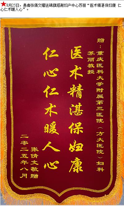 患者张倩文赠送锦旗感谢妇产中心苏丽。-锦旗-患者心声-患者服务-重庆医科大学附属第三医院【官方网站】