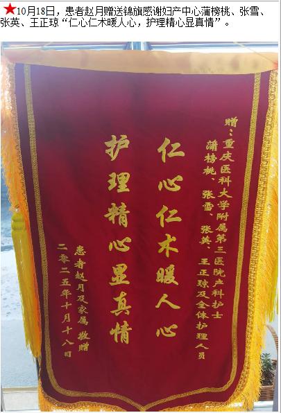 患者赵月赠送锦旗感谢妇产中心蒲榜桃等人。-锦旗-患者心声-患者服务-重庆医科大学附属第三医院【官方网站】