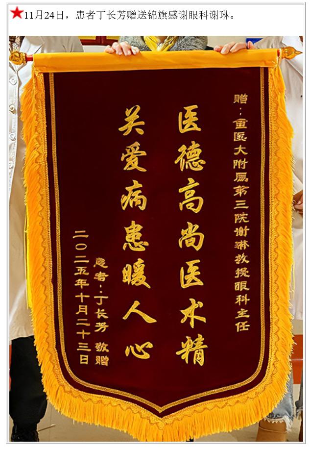 患者丁长芳赠送锦旗感谢眼科谢琳-锦旗-患者心声-患者服务-重庆医科大学附属第三医院【官方网站】
