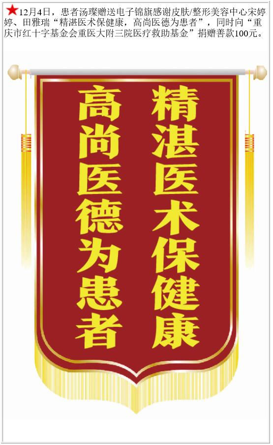 患者汤璨赠送电子锦旗感谢皮肤/整形美容中心宋婷婷等,并向医疗救助基金捐赠善款100元。-锦旗-患者心声-患者服务-重庆医科大学附属第三医院【官方网站】
