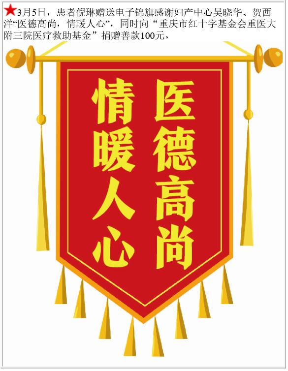 患者倪琳赠送电子锦旗感谢妇产中心吴晓华等,并向医疗救助基金捐赠善款100元。-锦旗-患者心声-患者服务-重庆医科大学附属第三医院【官方网站】