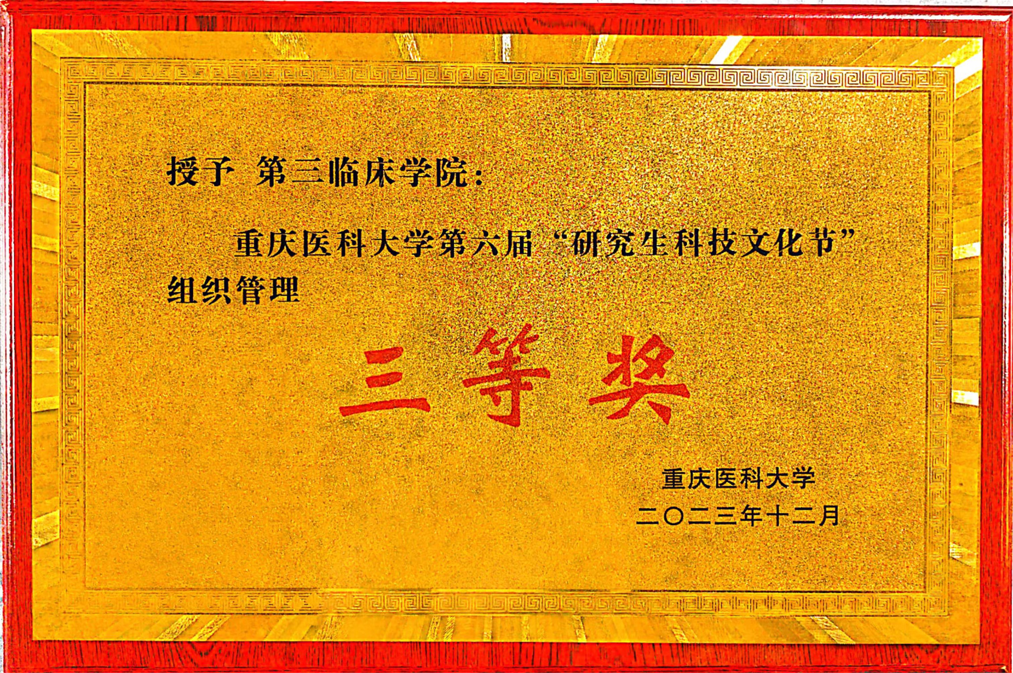 2023年12月,重医大附三院研究生心理团辅活动在重庆医科大学第六届“研究生科技文化节”中荣获三等奖。