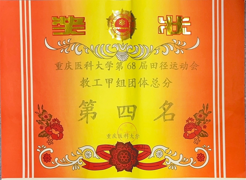 2024年4月13日,重医大附三院在重庆医科大学第68届田径运动会荣获教工甲组团体总分第四名