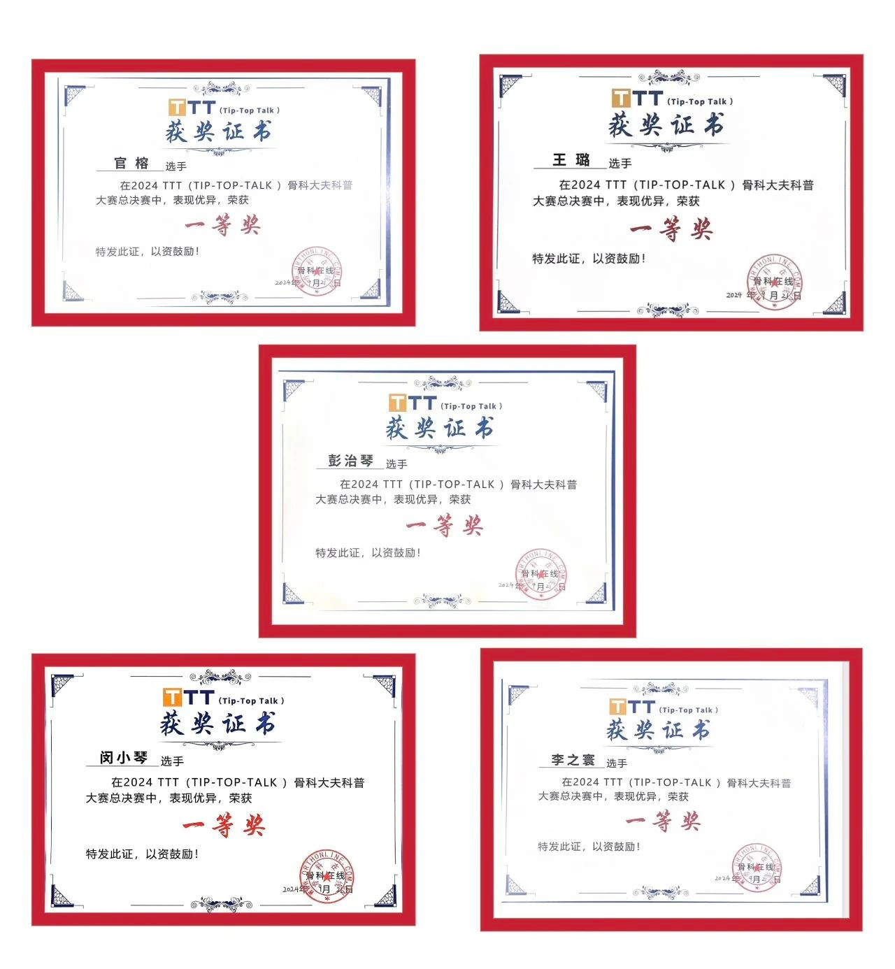 2024年9月,重医大附三院骨与创伤中心荣获“TTT(Tip-Top Talk)2024骨科大夫科普大赛”全国一等奖