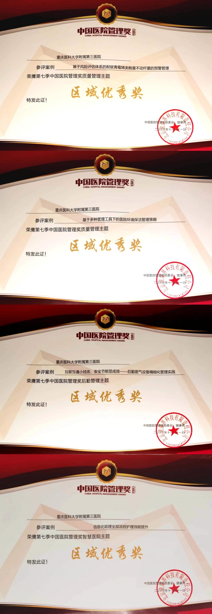 2023年10月,重医大附三院4个项目荣获第七季“中国医院管理奖”西南片区“区域优秀奖”