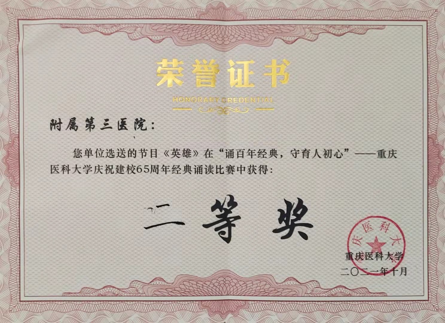 重庆医科大学庆祝建校65周年经典诵读必比赛二等奖