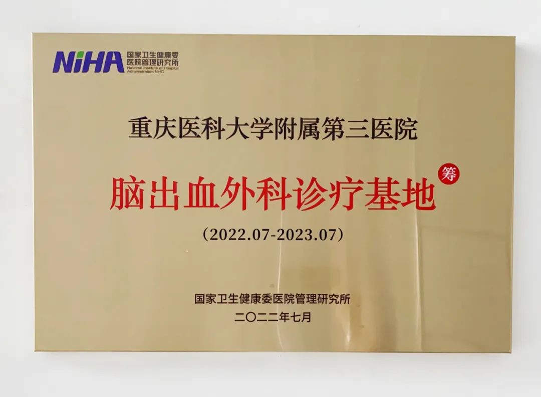 国家卫健委医院管理研究所授予重医大附三院“脑出血外科诊疗基地(筹)”称号