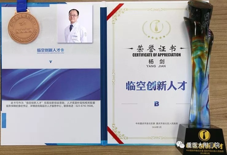 临床营养科副主任杨剑教授获评为重庆市渝北区“临空创新人才”