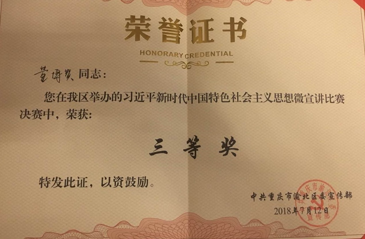 董博赞在渝北区“理论麻辣烫”微宣讲决赛中荣获三等奖