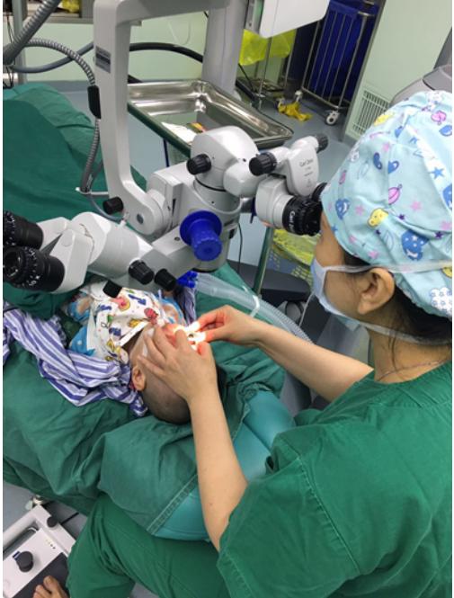 患儿只有1岁零4个月,因Sturge-Weber综合征继发青光眼来我院眼科就诊。一年前患儿家长慕名找到谢琳主任,谢琳主任在全麻下为患儿进行了检查,并为患儿做了左眼的小梁切开手术。这次患儿家长不远万里再次谢主任,希望谢主任能够除去小孩的顽疾。经谢主任仔细地诊查,并和眼科全体医生对此患儿的病例进行了充分的讨论,最后决定在全麻下为患儿进行双眼的检查,必要时行小梁手术。