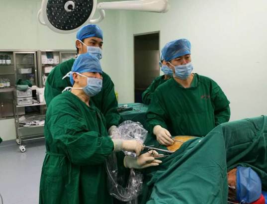 2017年2月7日,汪天虎主任、王睿副教授、张宏主治医师、张礼平医师在手术室麻醉科医护团队的支持、配合下,完成了单操作孔胸腔镜下弥漫性胸膜恶性间皮瘤减灭术+高温化疗,这一手术刷新呼吸疾病中心纪录。弥漫性胸膜恶性间皮瘤,这类胸内已广泛转移的肿瘤患者愈后极差,现有医疗技术尚缺乏有效的治疗手段。基于我科在晚期肺癌胸内广泛种植转移方面治疗的成功经验,为这一患者采用单操作孔胸腔镜微创手术加热化疗的方式进行治疗,手术需要极大的耐心和仔细的操作,逐一清除上百个病灶。在内外医生共同参与、医护团队精心治疗和护理下,目前患者病情平稳,已能自主下床活动。2月9日,一名被疾病折磨6年、多方求医无果,最终在我院得以确诊为食管纤维肿瘤的患者,经胸外科团队的耐心操作,成功在胸腔镜下切除病变。2月10日,采用仅约3cm左右的单操作孔,又成功为一例10cm以上的左上肺癌患者行根治性切除+术中热化疗,该类手术国内极少见报道,需要极高的胸腔镜手术技术。