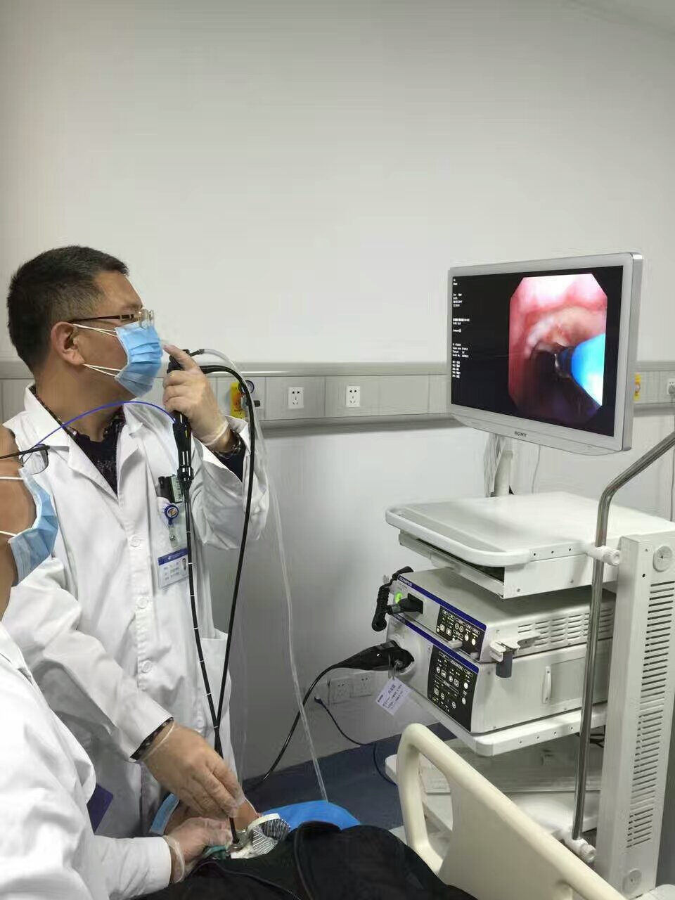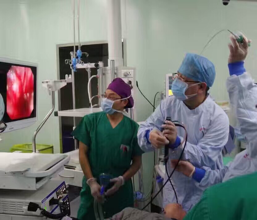 2017年2月7月,洪新主任、张军主治医师在手术室麻醉科的配合下成功开展了第一例无痛支气管镜检查。支气管镜检查已成为目前呼吸道疾病确诊和治疗的重要手段之一,但作为一种侵入性的手段尚不被大多数人接受。传统的支气管镜在整个检查过程中有较多的患者紧张,恐惧,出现呛咳、屏气、恶心、呕吐等症状,受检者由于过度紧张而诱发各种疾病,甚至无法忍受而中断检查。目前我科开展的无痛性支气管镜检查,尽可能避免上述症状的出现,从而减轻患者的痛苦。