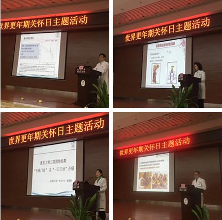 在学术报告厅由妇儿中心留美博士易萍副主任,讲解《更年期的误区与应对措施》中如何针对更年期的根源解决根本问题进行简而易懂的科普;临床营养科留美博士杨剑副主任谈到围绝经期合理营养与饮食管理,从围绝经期身体成份的变化,各种营养食物的补充,膳食调理,给大家进行深入浅出的讲解;内分泌疾病中心倪银星主任讲到《骨质疏松症---静悄悄的病》,从骨质疏松症的危害、认识骨质疏症的表现、确诊骨质疏松症的检查、以及如何预防骨质疏松症和骨折的方法等方面让大家深入了解这一在更年期常见病的预防及治疗;最后妇儿中心俞丽丽副教授就《围绝经期专病门诊及一日门诊流程介绍》进行详细的讲解。现场听众气氛活跃,并对现场的听众提出的问题进行逐一解答。
