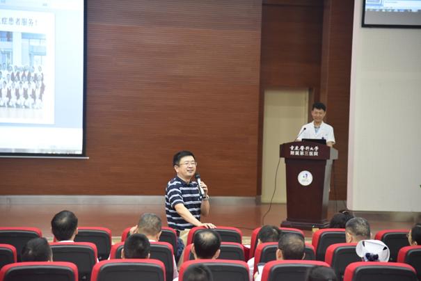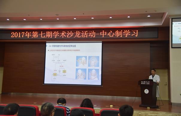 培训会由神经疾病中心主任张云东从“科内中心制开展”、“院内中心制运行”及“不足与展望”三个方面展开的讲座拉开序幕。张主任精彩地解说了科室从内外科综合诊治,建立内外科联合的亚专业组,加强科室中心制培训学习、内外互补,加强制度管理、奖罚分明,内外联合查房等方面加强中心制管理。对于推动中心制工作中的不足和困惑,张主任表示将从改变思维、优化流程、信息支撑和人才培养等方面逐步解决。