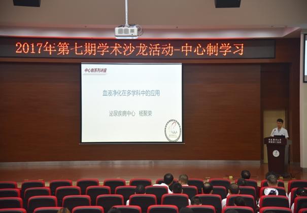 2017-06-16 00:00 6月14日,我院在学术报告厅再次召开了以“中心制”学习为主题的“第七期学术沙龙活动”。特邀神经疾病中心主任张云东和泌尿疾病中心(血透中心)副主任杨聚荣做科室中心制经验交流。常务副院长严敏和党委副书记、副院长曾燕出席会议,全院300余名员工聆听了讲座。