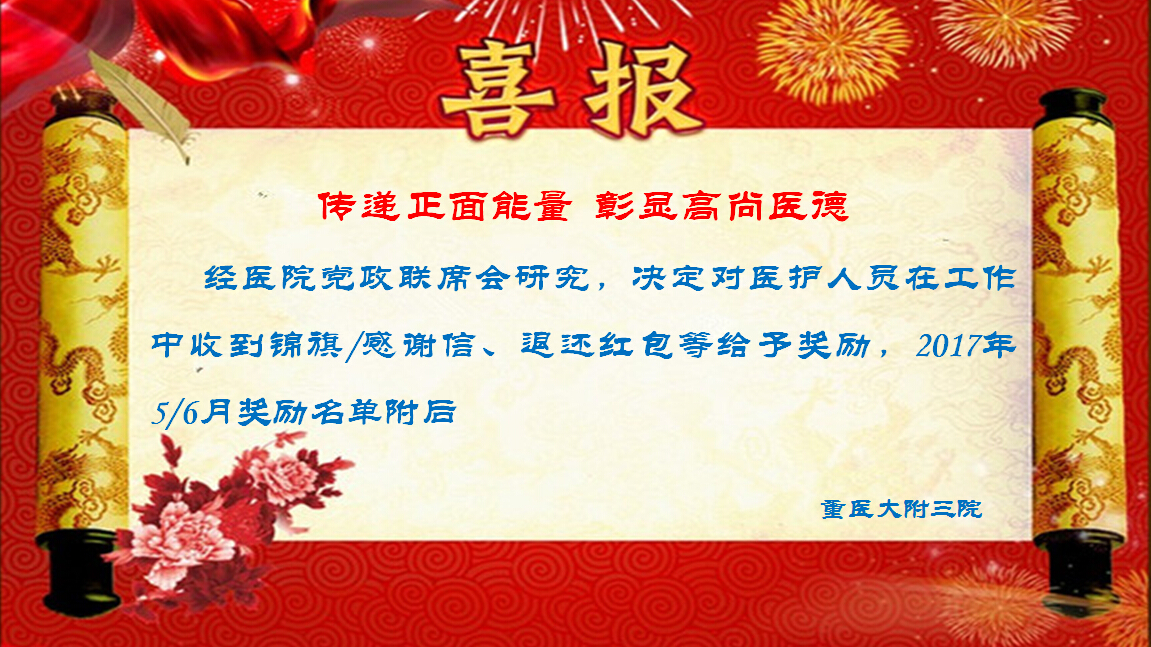 传递正面能量 彰显高尚医德——附三院医德医风奖励(2017年5—6月)
