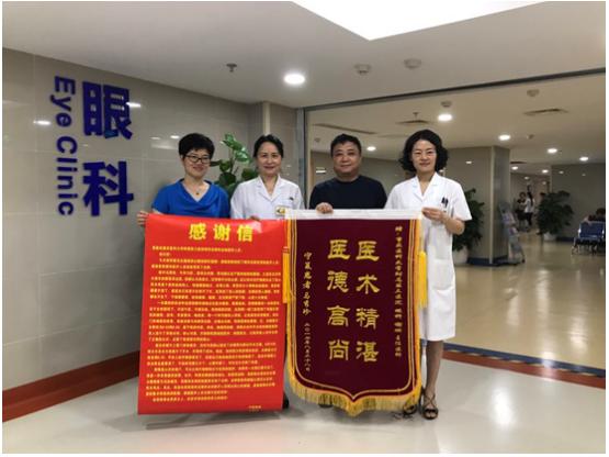 术后一个月已经过去,马奶奶的儿子带着锦旗和感谢信来到我院,他激动地拉着谢主任的手说,现在马奶奶在家能自己炒菜做饭了,这一切都要感谢谢琳教授及眼科全体医护人员的仁心仁术!