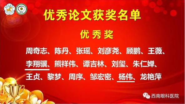 此次年会上,我院眼科主任谢琳教授,携眼科团队,在会上分享交流了眼科医学的经验和前沿进展。其中,谢琳教授在大会上作了“色素性青光眼的临床特征解析”的专题发言、秦伟教授作“神经相关眼眶病”的专题发言,取得了良好的反响。李翔骥博士的“新型涂层镁合金对人Tenon’s囊成纤维细胞生物调控的作用研究”与杨伟医师的“眶鼻沟通真菌感染”从全市投递的300余篇论文中脱颖而出,获得优秀论文奖。
