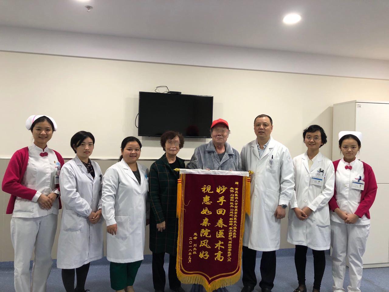 2018-10-18 00:00 10月9日,患者刘某及家属激动地拿着“妙手回春医术高,视患如亲医风好”的锦旗,赠予风湿免疫科全体医护人员。这是科室病区8月28日投入运行以来收到的首面锦旗。