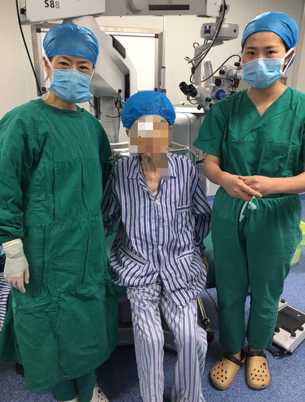 在与患者家属反复沟通后,7月17日下午手术如期进行,手术每一步都如履薄冰,每完成一步大家紧张的心情都会轻轻放松一下。最后,手术顺利完成,“罪魁祸首”的晶体被成功摘除。术后次日,拆开纱布检查,眼压降至正常,视力也恢复到最佳状态。老太太露出了久违的笑容,并双手合十送上最真挚的感谢。