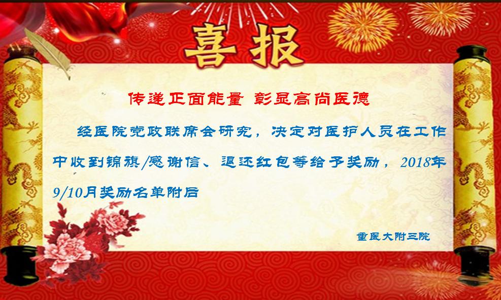 传递正面能量 彰显高尚医德——附三院医德医风奖励(2018年9—10月)