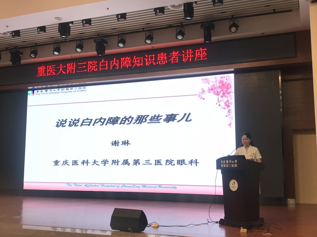 2018-08-15 00:00 2018年8月14日下午,我院眼科在学术报告厅成功举办了“白内障知识患者讲座”,国内著名眼科专家、重医大附三院眼科主任谢琳教授就“白内障那些事儿”进行了生动讲解。