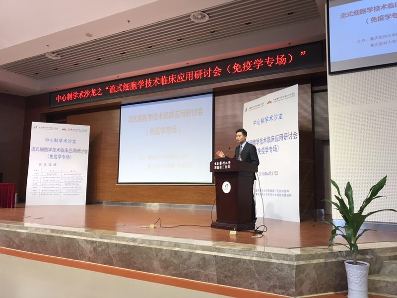 2018-05-04 00:00 共聚一堂为流式,山城论道话免疫。4月27日,由重医大附三院和重医附属大学城医院共同主办的“流式细胞学技术临床应用研讨会”在附三院学术报告厅成功举行。西南医院、大坪医院、市肿瘤医院、市人民医院及重医检验医学院、重医附一院、重医附二院、重医儿童医院等多位资深流式专家参会,吸引了四川绵阳、遂宁,重庆万州、忠县、开县等多家区县医院以及金域检验等众多临床医生及流式同道参会,全场总参会人数达百人。检验科副主任邓昆副教授主持会议。