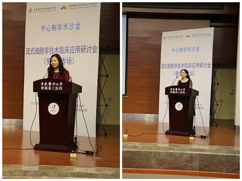 成都军区总医院转化医学科主任吴丽娟教授重点讲解了淋巴细胞亚群(免疫功能)在感染中的应用及特殊感染情况下如何结合淋巴细胞亚群(免疫功能)检查结果指导临床诊疗和合理用药;大连医科大学附属第二医院流式细胞中心朱杰教授阐述了免疫功能在血液病、肿瘤、儿科、风湿免疫系统疾病感染类型鉴别等方面的应用;四川大学华西医院实验医学科流式平台负责人蒋能刚教授分享了流式细胞术在白血病/淋巴瘤诊断及MRD的临床应用。附三院向德栋教授介绍了淋巴细胞亚群检查(免疫功能)在乙型肝炎诊断,治疗方案及药物的选择,疗效判断及预后评估的重要指导意义;谢启超副教授为大家分享了流式细胞术在肿瘤诊断、免疫状态监测及肿瘤复发预后等方面的临床应用和前景展望;杨再林主管技师介绍了淋巴细胞亚群(免疫功能)在呼吸系统疾病、消化疾病、肾病、ICU重症患者及健康体检中的应用。