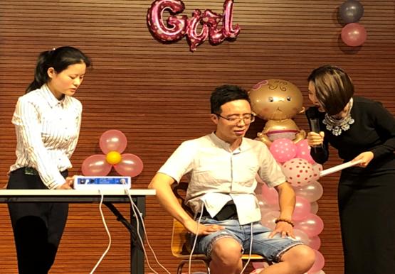 活动开始前,妇产中心胡珊副主任致辞,她介绍了本次活动的主讲嘉宾,阐述了此次活动对母亲节的深远意义。随后,活动在孕妈妈们精彩的肚皮舞表演中拉开了序幕,她们自信的笑脸,灵动的舞蹈,赢得了台下此起彼伏的掌声。紧接着,精心准备的分娩镇痛仪登上舞台,三位勇敢的准爸爸在舞台上体验10级分娩镇痛。三位准爸爸都忍痛坚持到9级,从最初额头冒汗,到最后下肢站立不稳,一直忍耐坚持体验,让台下的准妈妈们感动落泪。