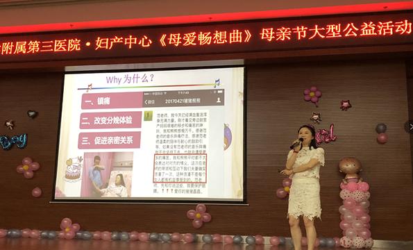 分娩体验后,国际认证泌乳顾问周明芳副教授为大家带来了《分娩镇痛》精彩讲座。周教授从生孩子的痛觉,分娩镇痛的由来,如何缓解等几方面为现场观众进行详细讲解。周教授呼吁孕妈妈们坚定信念,将分娩当成神圣的使命,积极参加孕妇学校课程,了解分娩、拥抱疼痛、接纳疼痛、学会缓解疼痛。