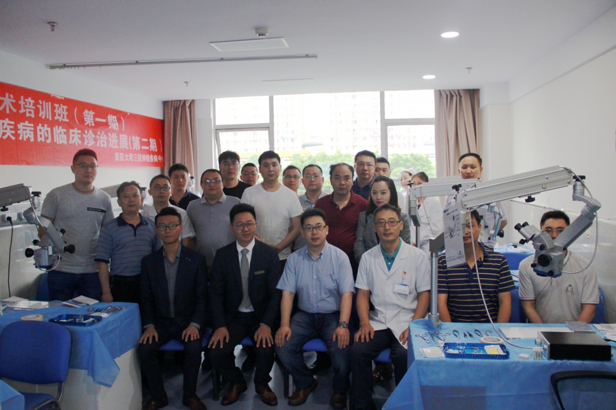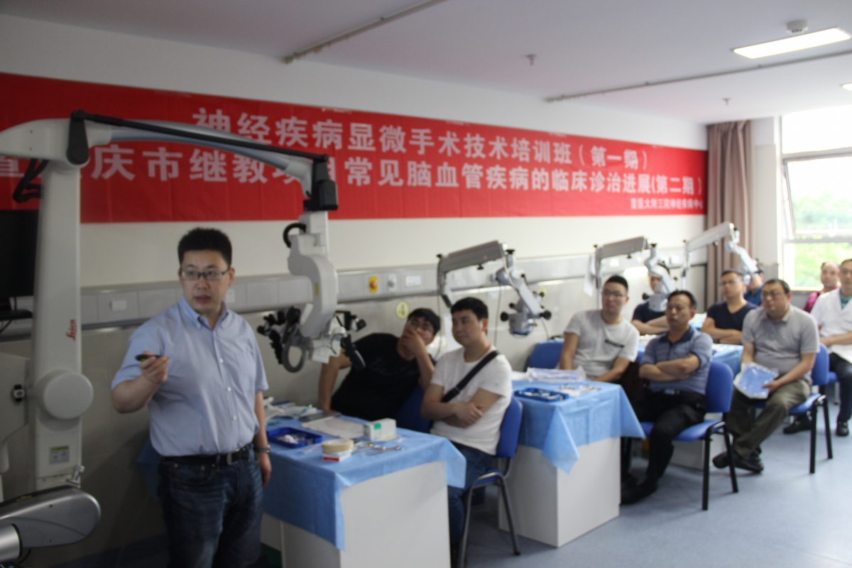 2018-06-01 00:00 5月26日至27日,重医大附三院神经疾病中心举办的第一期神经外科显微手术技术培训班开班授课,来自四川、贵州、重庆等地共15位学员参与学习。