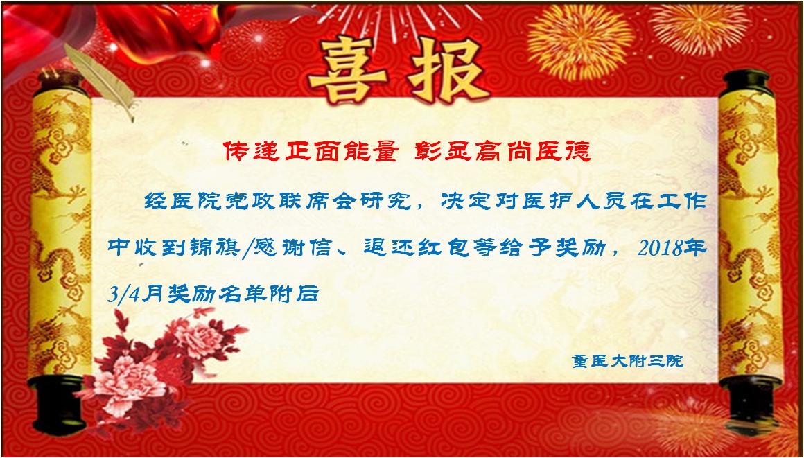 传递正面能量 彰显高尚医德——附三院医德医风奖励(2018年3—4月)
