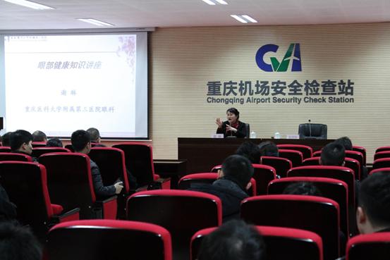 当日上午,眼科主任谢琳、医生张国伟分别讲授了眼科健康知识。针对安检从业人员的工作特性,专家们对干眼症的保健及预防、白内障等相关疾病,近视防控和隐形眼镜潜在危害等四个方面进行详细讲解。讲座中,安检站员工们就关心的眼部问题向专家们咨询,例如“孩子有弱视怎么办”“散光眼如何治疗”等。针对每位员工的不同情况,专家们都分别提供了不同的预防措施和治疗方案,并指导员工们一些简单的方法来控制自己的眼部疾病,并告诫员工们在日常生活中一定要保护好自己的眼睛。