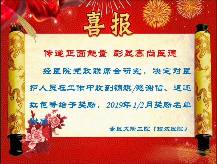 传递正面能量 彰显高尚医德——附三院医德医风奖励(2019年1—2月)