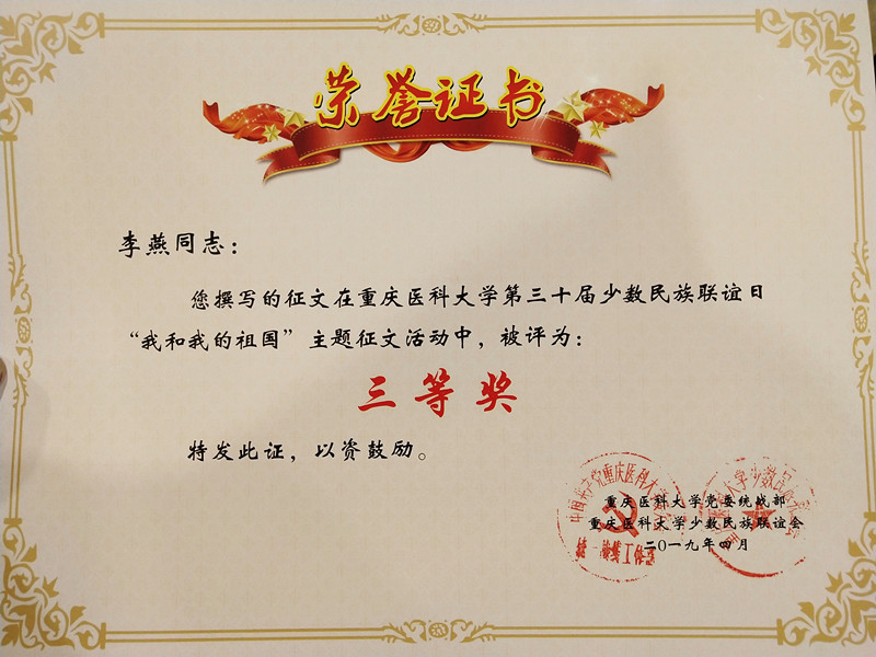 我院在学校第三十届少数民族联谊日“我和我的祖国”征文比赛中喜获佳绩