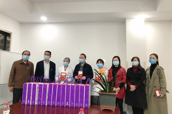 2020-04-24 00:00 4月22日上午,渝北区科学技术协会党组书记童杭军、主席李攀富、副主席黄孝礼一行来到重医大附三院,代表渝北区科协慰问我院1-4月期间过生日的十余位正高职称专家们以及我院援鄂医疗队的两名护理人员。